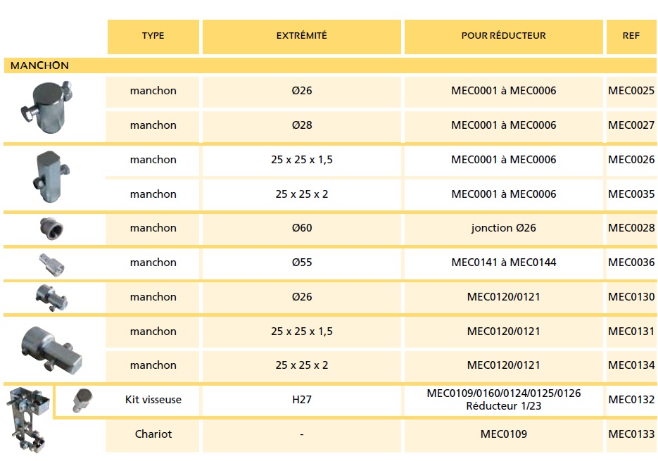 Manchon d’adaptation à votre matériel déjà sur place et vos habitudes de travail.